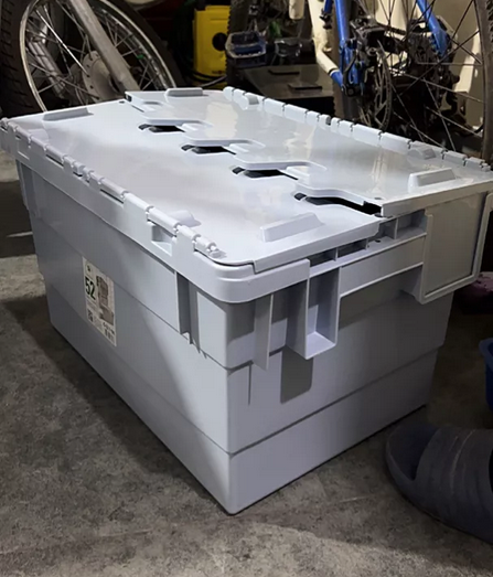 Dengan desain tutup menyatu (attached lid), box ini sangat cocok untuk sistem distribusi bolak-balik (returnable packaging system).