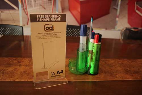 Display brosur acrylic adalah tempat penyimpanan brosur ukuran 1/3 A4 yang terbuat dari bahan acrylic, cocok untuk promosi jualan via brosur di Departement Store, Restoran, Rumah Makan, Kantor, Toko, Toko Buku, Bank, Dll.